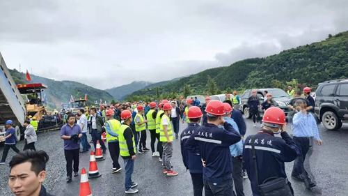 雨潺潺、意阑珊,凉风习习,微雨渐渐,2019年7月18日,由中铁四局七公司承建的太凤高速公路七标项目部,迎来陕西省高速集团品质工程观摩团,观摩会在梁子坪隧道施工现场拉开序幕。陕西省高速集团总经理孔庆学、副总经理马小伟、总工程师李建安及集团各部门、高速集团内5个在建管理处的处长、副处长和各管理处标段经理等100余人莅临现场观摩、指导路面品质工程建设情况。现场人潮涌动,下着微雨的天气,依旧减不掉这群工程人士高涨的热情。我司能够参与此次会议,是产品配备优化,人才队伍壮大,公司综合实力雄厚的集中体现。
