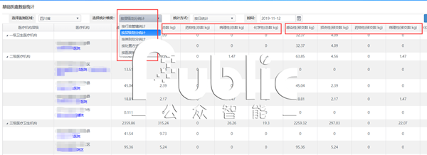 (2)不同维度(监管方向)上,各机构医疗废物收集数据/移交数据联动检索查询