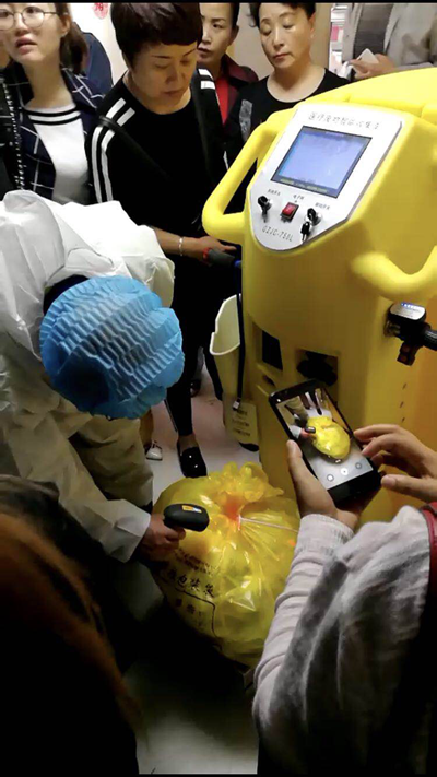 2018年5月23日,由甘肃省、市监督局领导带队,甘肃省级12家医疗机构、兰州市内18家医疗机构代表参加,我司技术人员全程陪同,在甘肃省人民医院(第一家医疗废物在线监测系统试点单位),对医疗废物智能收集车进行参观学习。