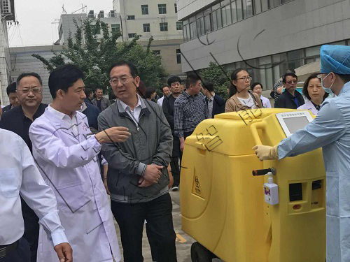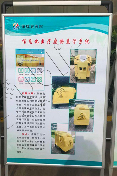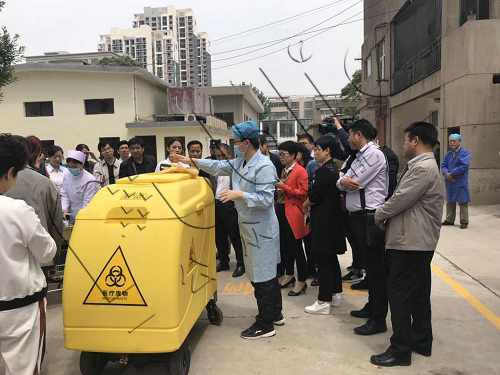 2018年5月9日,渭南市卫计局在蒲城县召开全市医疗卫生在线监督工作现场会暨医废监督管理整改动员会,我司技术人员陪同与会人员赴蒲城县医院、椿林镇卫生院现场观摩一体化智能医废收集车在线监测试点工作开展情况,重点就省委环保督查组反馈相关问题进行技术上改进。