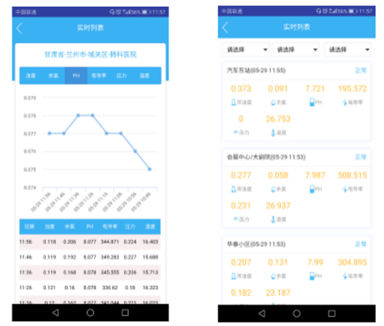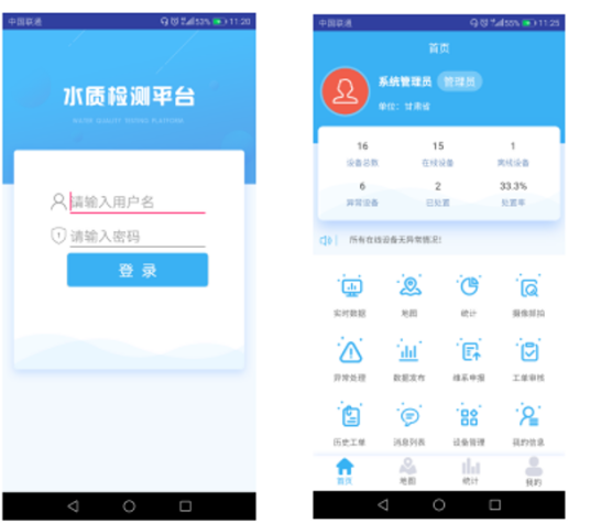 饮用水水质在线监测系统从全局角度出发,展示水质相关数据,以便及时监控各点位数据报警情况。系统可以通过不同权限的账号, 向政府、相关部门和供水企业传送监测数据。系统可兼容出厂水、管网末梢水、二次供水、直饮水、泳池水等不同监测对象。水质在线监测APP移动端实现预警推送、数据处理、查询实时数据、历史数据趋势图等主要软件功能。